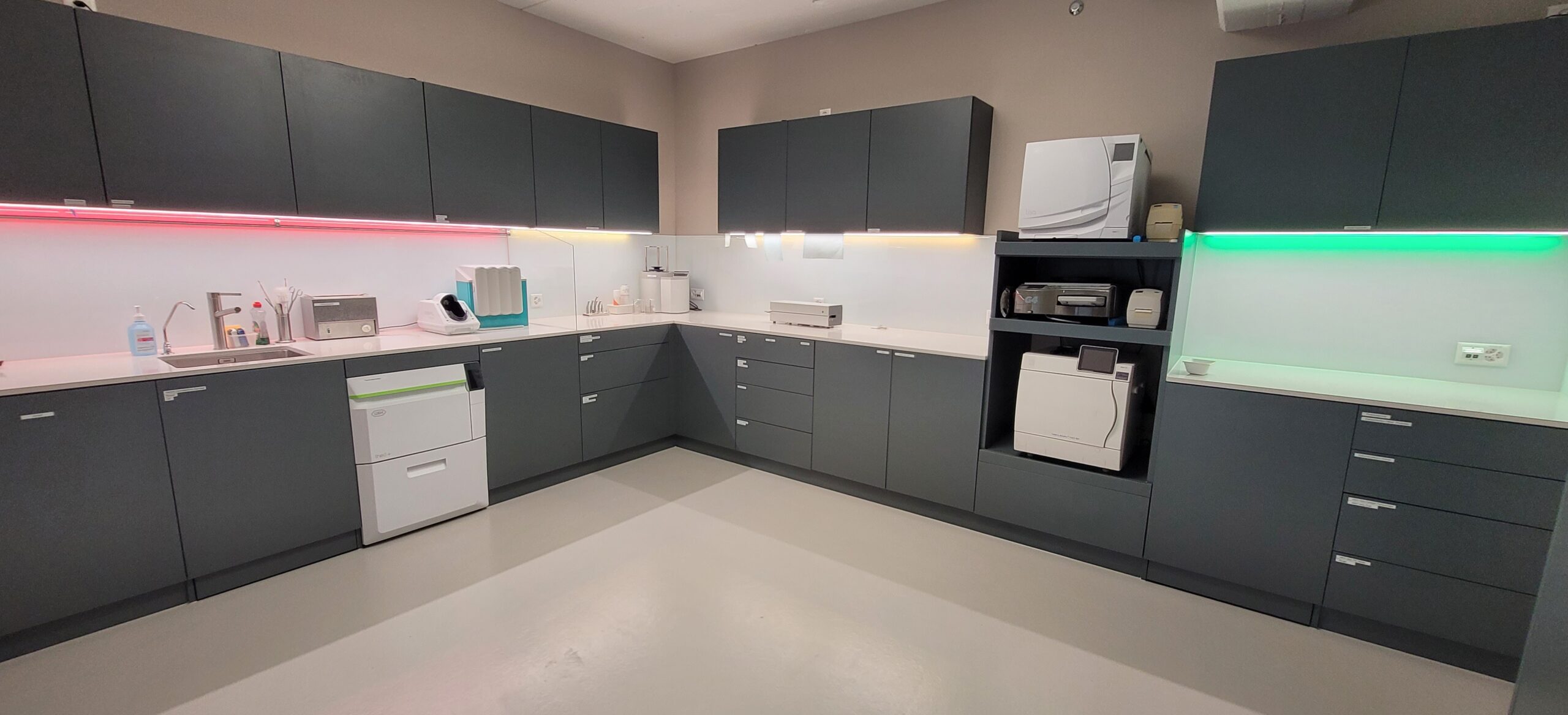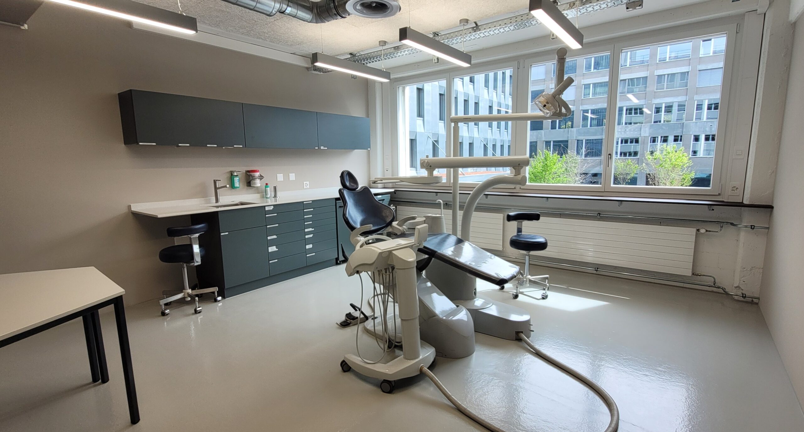 Das einer Zahnarztpraxis entsprechend eingerichtete DAZ umfasst nebst vier Behandlungszimmern, Sterilisationsraum, digitales Röntgen (Digora), auch verschiedene Schulungsräume, welche für Schulungen oder Fortbildungen vermietet werden.